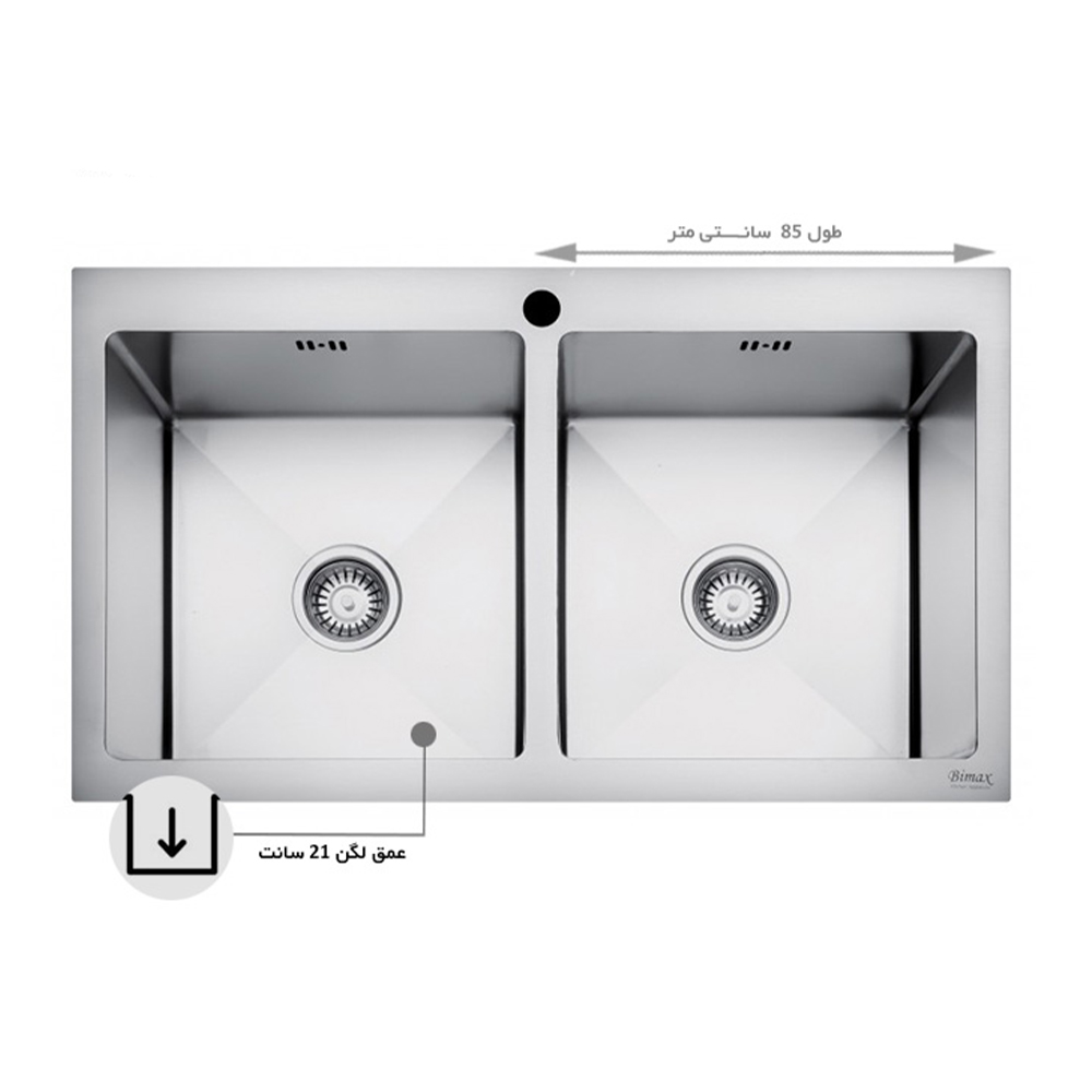 سینک بیمکث 722 BS توکار با ضخامت ورق استیل با کیفیت 1 میلیمتری و دارای دو لگن بدون سینی میباشد ابعاد این محصول 85 * 50 سانتی میباشد. این مدل دارای کیفیت بالا در ساخت و استفاده از ورق استیل مناسب