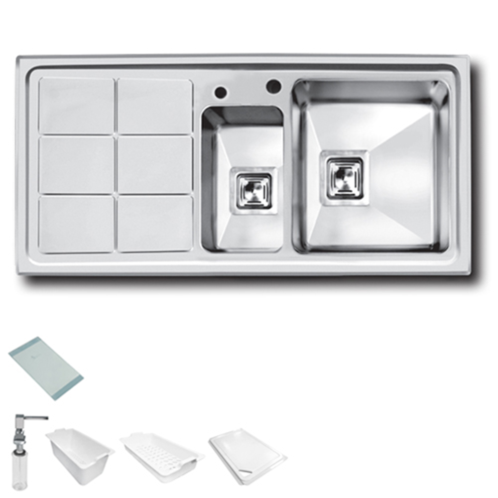 سینک اخوان توکار 310S با ظاهر فلت و کیفیت بسیار عالی و با ابعاد 100 در 50 سانتی متر این مدل دارای ورق استیل 1 میلیمتری با یک لگن و یک میوه شور