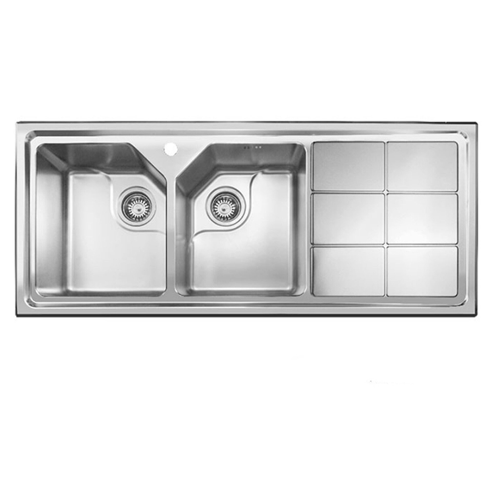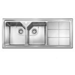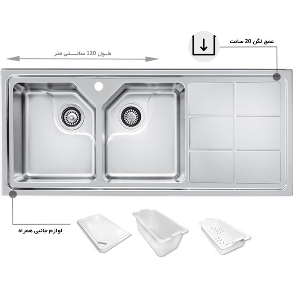 سینک اخوان 324 S توکار ابعاد این محصول 120 در 50 سانتی متر میباشد . ضخامت ورق این محصول حدود یک میلیمتر میباشد بدون جامایع و تخته ساطوری شیشه ای عرضه میگردد یکی از پر فروش ترین سینک های موجود در بازار با لگن های بزرگ هم اندازه