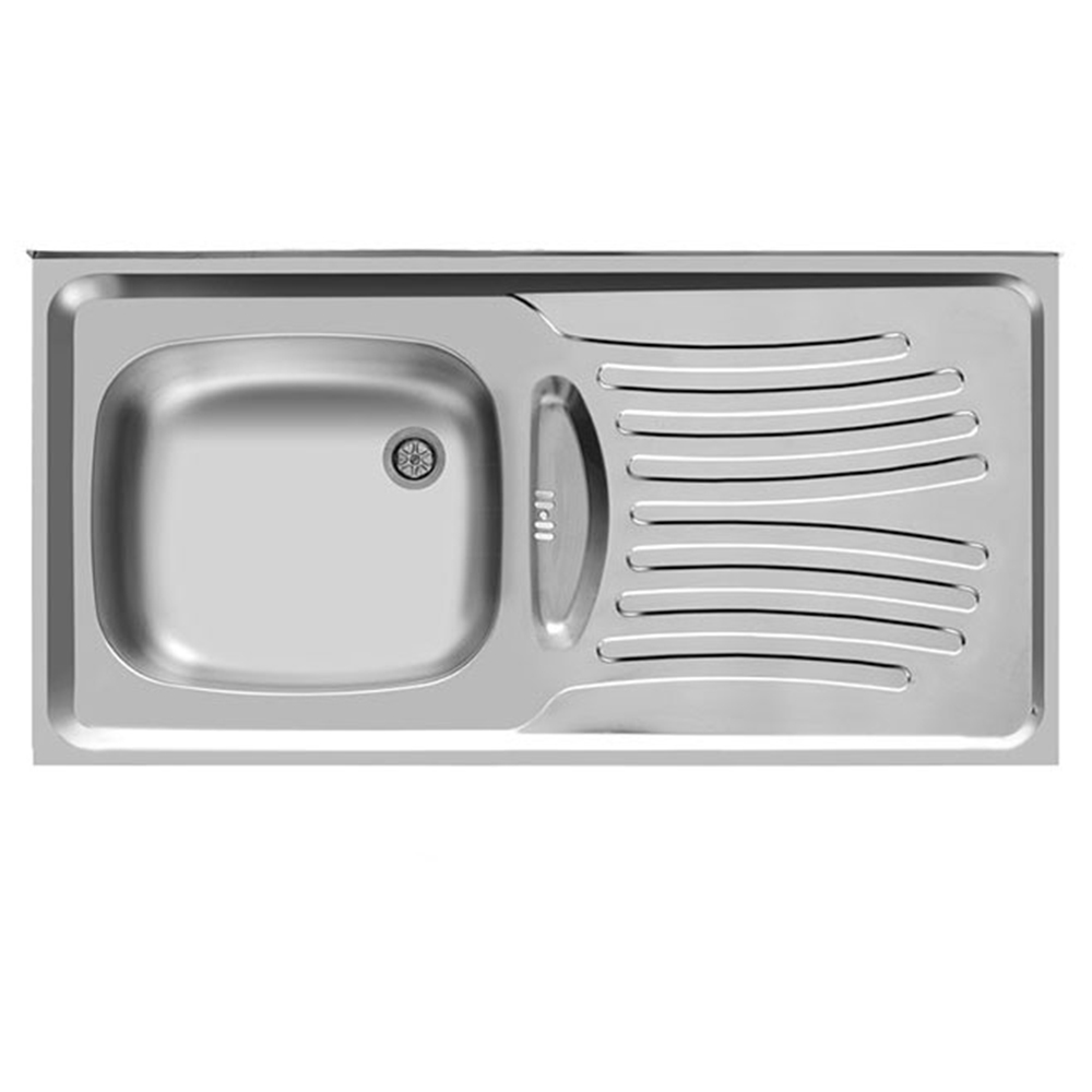 سینک اخوان کد 123 دارای یک لگن و یک سینی ابعاد این محصول 100 * 50 سانت میباشد با ضخامت ورق 0/6 میلیمتری و زیراب نیمه فانتزی کوچک
