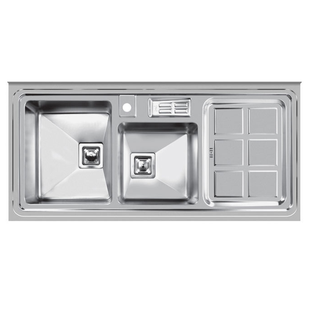 سینک اخوان روکار S 320 با اندازه 120 در 60 سانتی متری و نصب به صورت روکار بوده. ضخامت ورق این محصول 1 میلیمتری و بدون جا مایع و تخته ساطوری شیشه ای میباشد