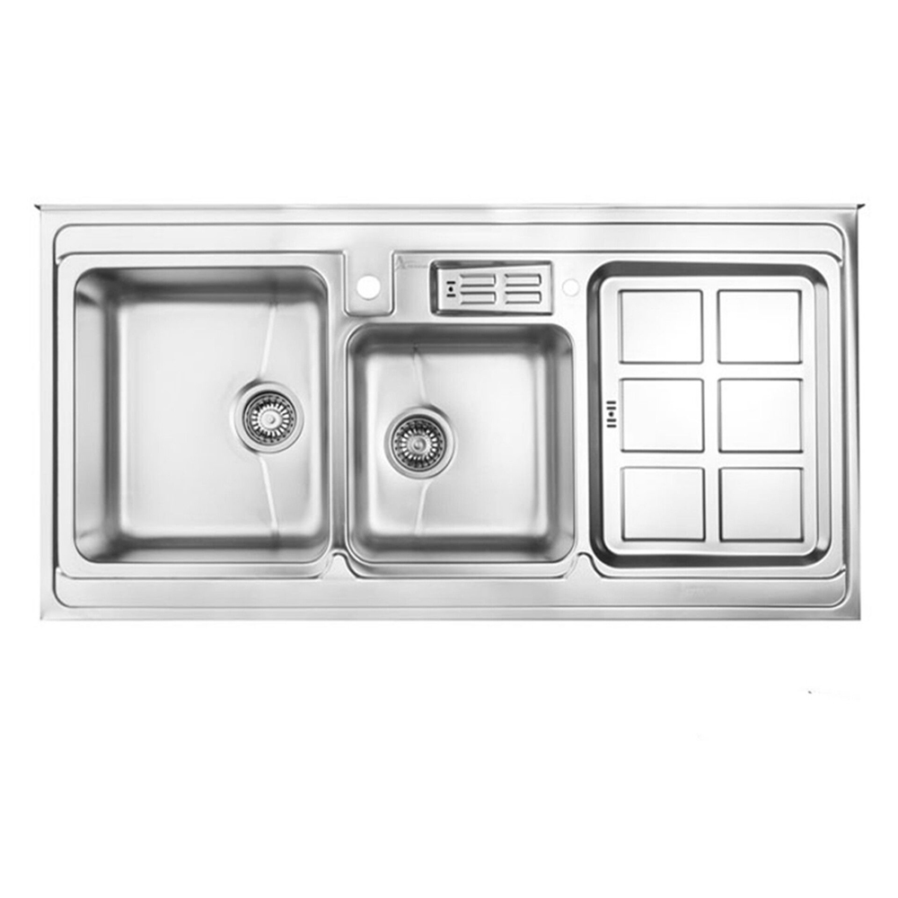سینک اخوان روکار مدل 362 دارای ابعاد 120 * 60 سانتی متری و ورق 0/6 میلیمتری با کیفیت. تفاوت این سینک با سینک 320 اخوان در لگن میباشد که در این سینک لگن ها با سینی یک تکه میباشد ولی در سینک 320 لگن ها از سینک جدا بوده و بعد به سینی جوش داده میشود. این سینک به خاطر لگن یکپارچه ضخامت خوبی ندارد