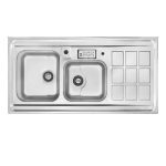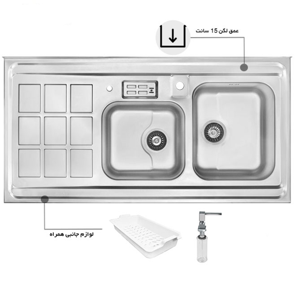 سینک اخوان مدل 364 روکار سایز این محصول 120 * 60 سانت میباشد عمق لگن سینک 15 سانتی متر و دارای جا مایع ظرفشویی . این محصول درای ورق با پرس یک تکه میباشد و در نظر داشته باشید ضخامت ورق در لگن ها بسیار ضعیف است و در مصارف طولانی مدت دچار مشکل خواهد شد