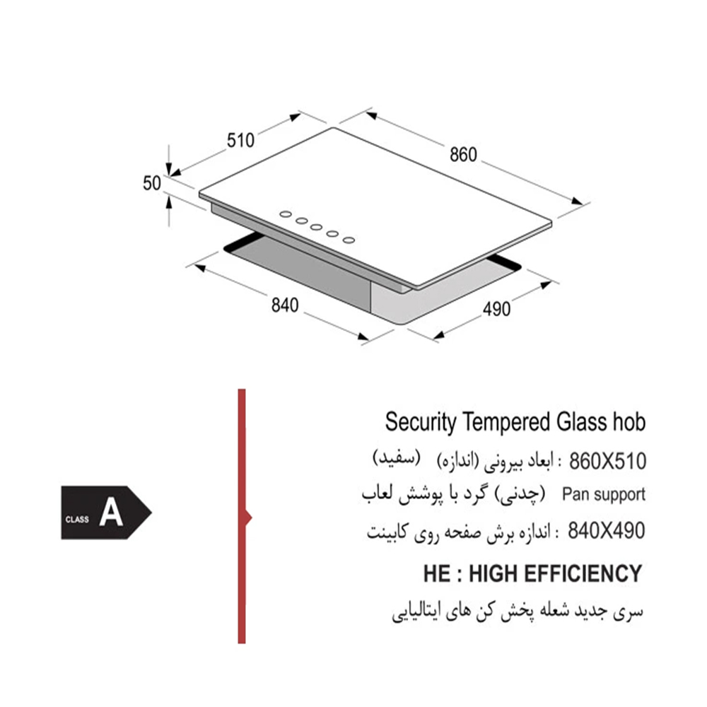 گاز صفحه ای اخوان G 142 این مدل اجاق گاز رومیزی کارخانه اخوان دارای 5 شعله با نمای شیشه سکوریت سفید . ویژگی بارز این محصول استفاده از قطعات ساخت کشور ایتالیا میباشد
