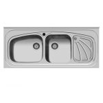 سینک اخوان روکار مدل 60 با ابعاد 120 در 50 سانت عمق لگن این محصول 18 سانتی متر میباشد این محصول مناسب برای کابینت های با صفحه 50 سانت میباشد