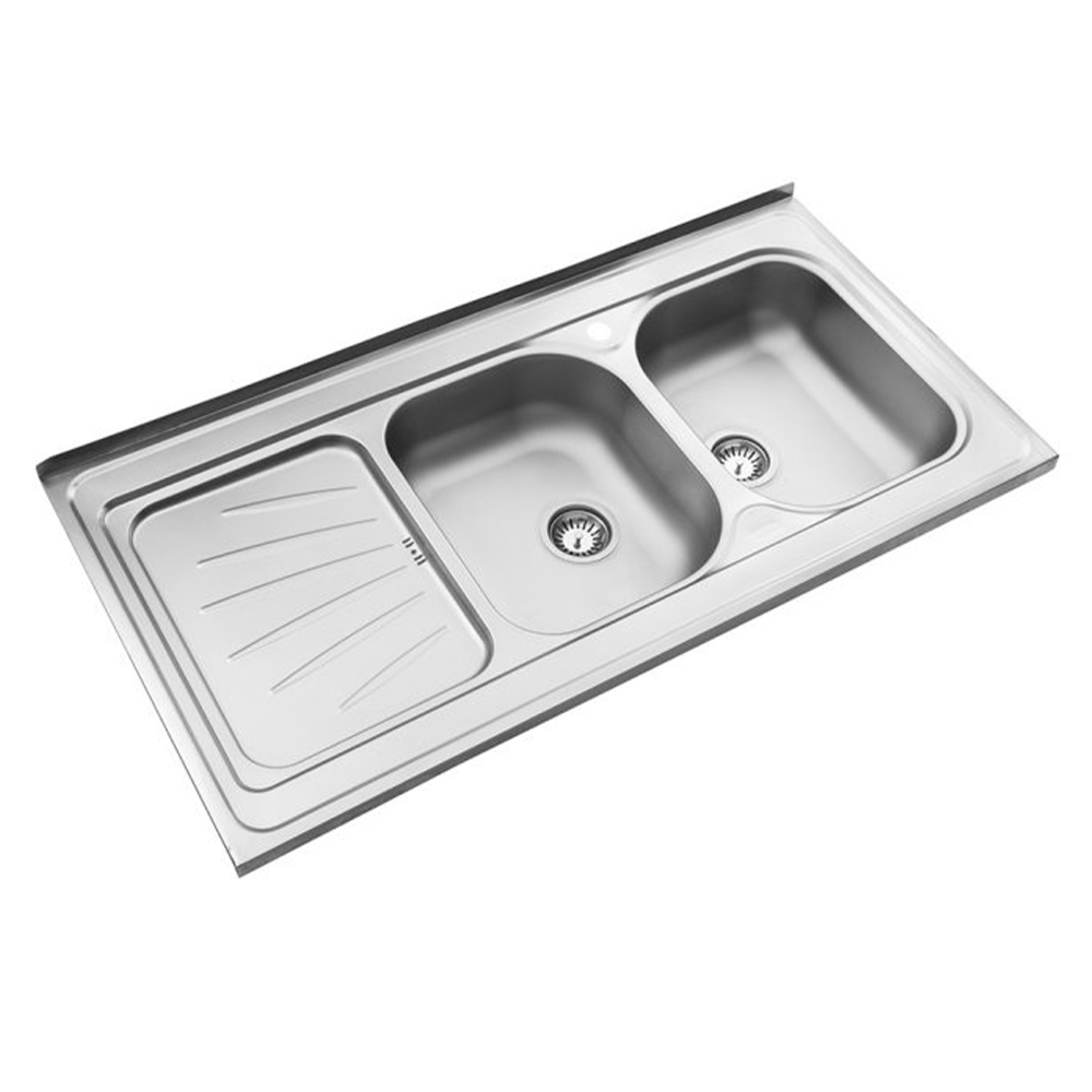 سینک استیل البرز 214 روکار دارای ابعاد 120 * 60 سانتی متر عمق لگن 16 سانت توجه فرمایید این عمق لگن خیلی مناسب برای استفاده خانگی نمیباشد. این محصول دارای سرریز بر روی سینی میباشد