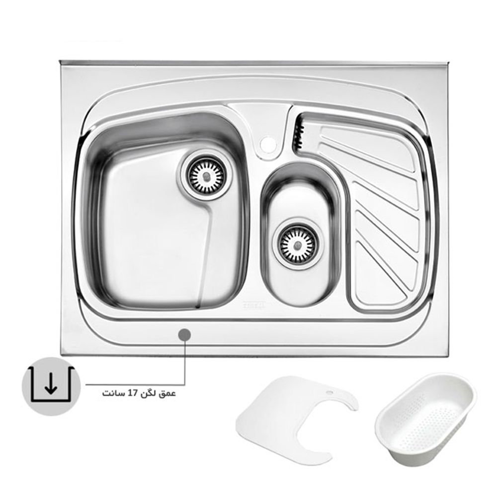 سینک استیل البرز 608 روکار این مدل محصول دارای ابعاد 80*60 سانتی متر این محصول دارای یک لگن بزرگ و یک میوه شور میباشد به همراه سر ریز بر روی سینی