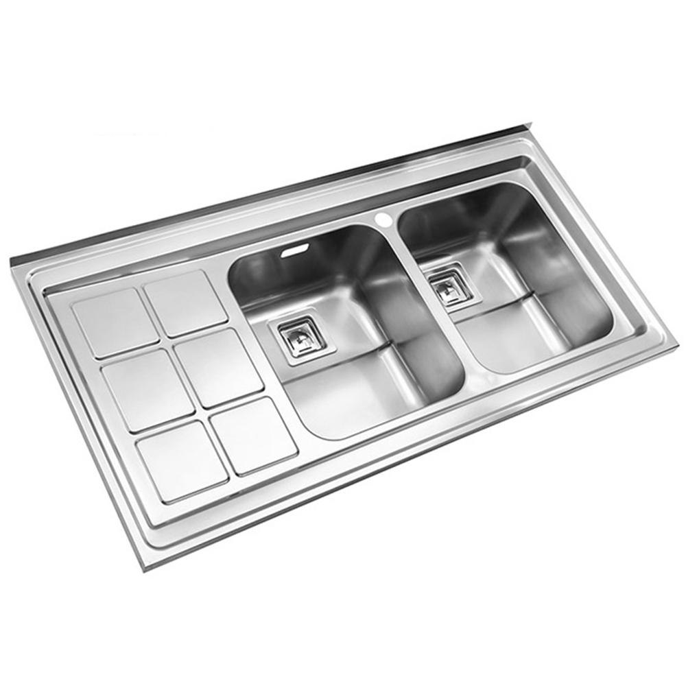 سینک استیل البرز 761 روکار این مدل دارای طراحی سینی همه کس پسند و پر تکرار در اکثر برند ها که شکل لگن آن به صورت مربعی است که گوشه های آن بصورت منحنی میباشد سایز 120 در 60 سانت و عمق 20 میباشد. ضخامت ورق استفاده شده در محصول 0/8 واقعی میباشد