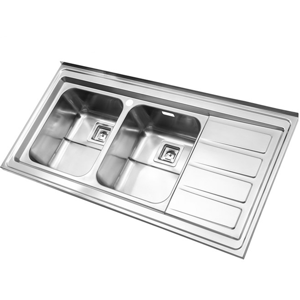 سینک استیل البرز 764 روکار این محصول با سایز 120 * 60 و طراحی سینی و لگن های زیبا و منحصر به فرد این کارخانه میباشد. عمق لگن این سینک 20 سانتی متر است به همراه زیراب بزرگ فانتزی با تخلیه سریع