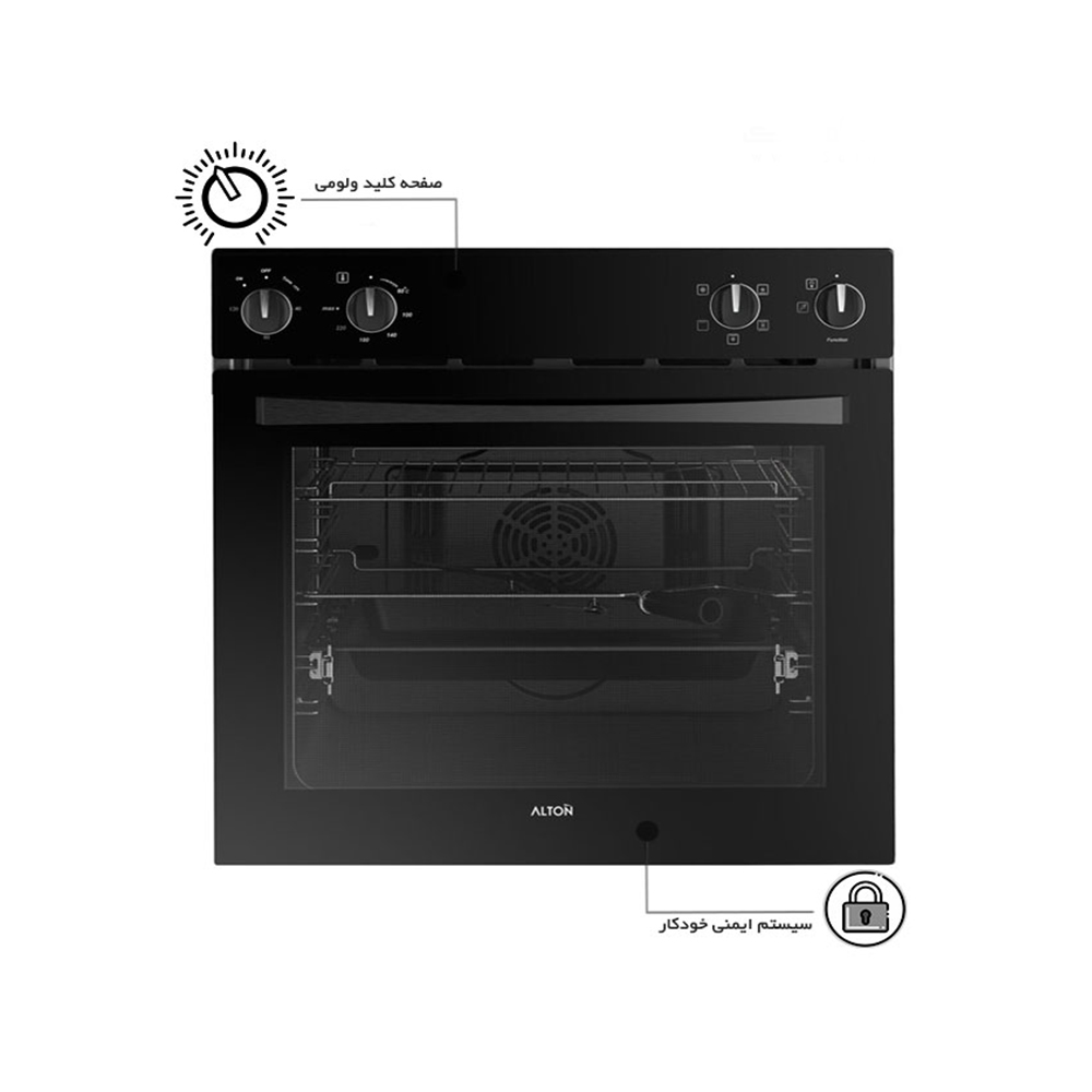فر توکار آلتون V305 برقی این محصول یکی از ارزانترین فر های تولیدی کارخانه آلتون میباشد که با صفحه کلید تمام مکانیکی تولید میگردد. تمای این دستگاه شیشه سکوریت مشکی میباشد