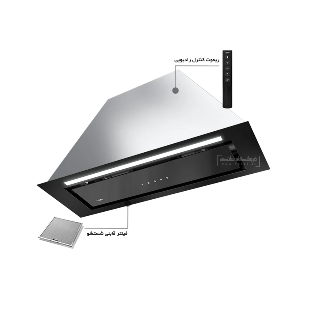 هود کن آرتیما 9 مخفی این مدل دارای طول 80 سانمتی متر به همراه دارای ریموت کنترل رادیویی و کلید لمسی همراه با LED نورانی تولید میگردد. از ویژگی های این محصول علاوه بر زیبای میتوان به موتور توربو و کم صدای آن اشاره نمود