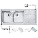 سینک اخوان توکار 324 این محصول دارای ورق ضخیم ساخت کشور ایتالیا به همراه جا مایع میباشد. دو لگن هم اندازه در این محصول یکی از ویژگی های ممتاز کننده این سینک نسبت به مدل های مشابه میباشد
