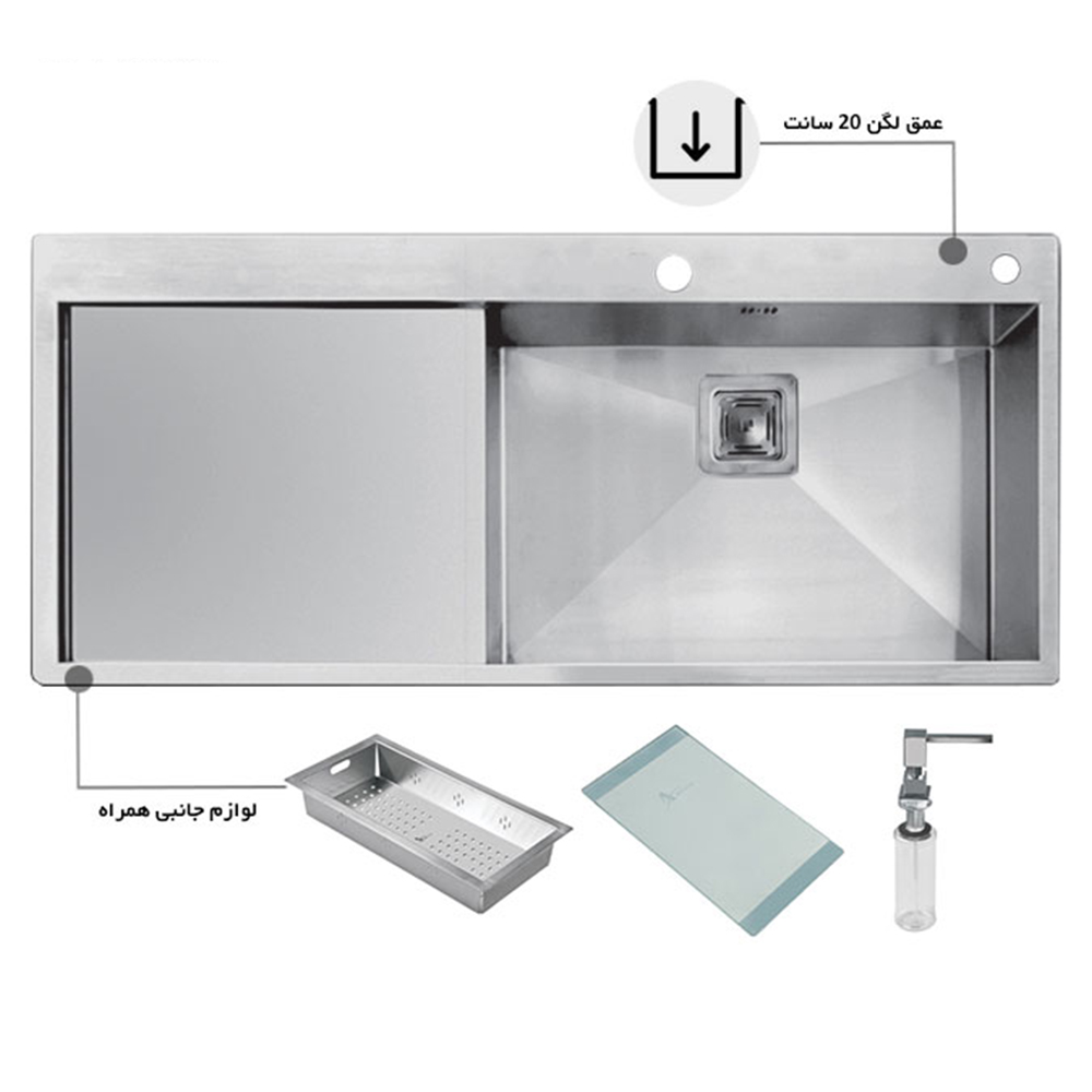 سینک اخوان توکار NEW348 با ابعاد 100 * 50 سانتی متر و استیل 1 میلیمتری تولید میگردد نوع طرح این سینک معروف به سینک دست ساز ( بدون پرس ) میباشد این محصول به همراه جا مایع ظرفشویی ارائه میگردد
