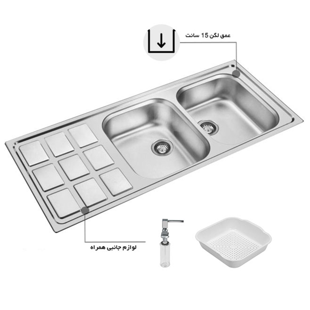نام محصول : سينک ظرفشویی اخوان 368 | Akhavan sink 368 inset نصب به صورت : توکار تعداد و نوع لگن : دو لگن...بیشتر