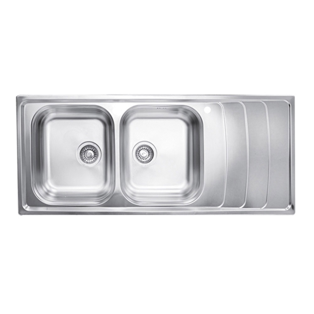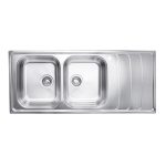 این سینک توکار دارای دو لگن با عمق14 سانتیمتری بوده که شکل نیم باکسی بودن لگن ها باعث حرکت بهتر آب و نظافت بیشتر و راحت تر می شود