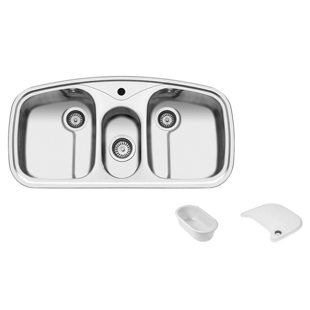 سینک اخوان توکار 8 دارای 2 لگن با یک میوه شور این سینک به صورت توکار بوده و دارای خروجی فاضلاب فانتزی میباشد