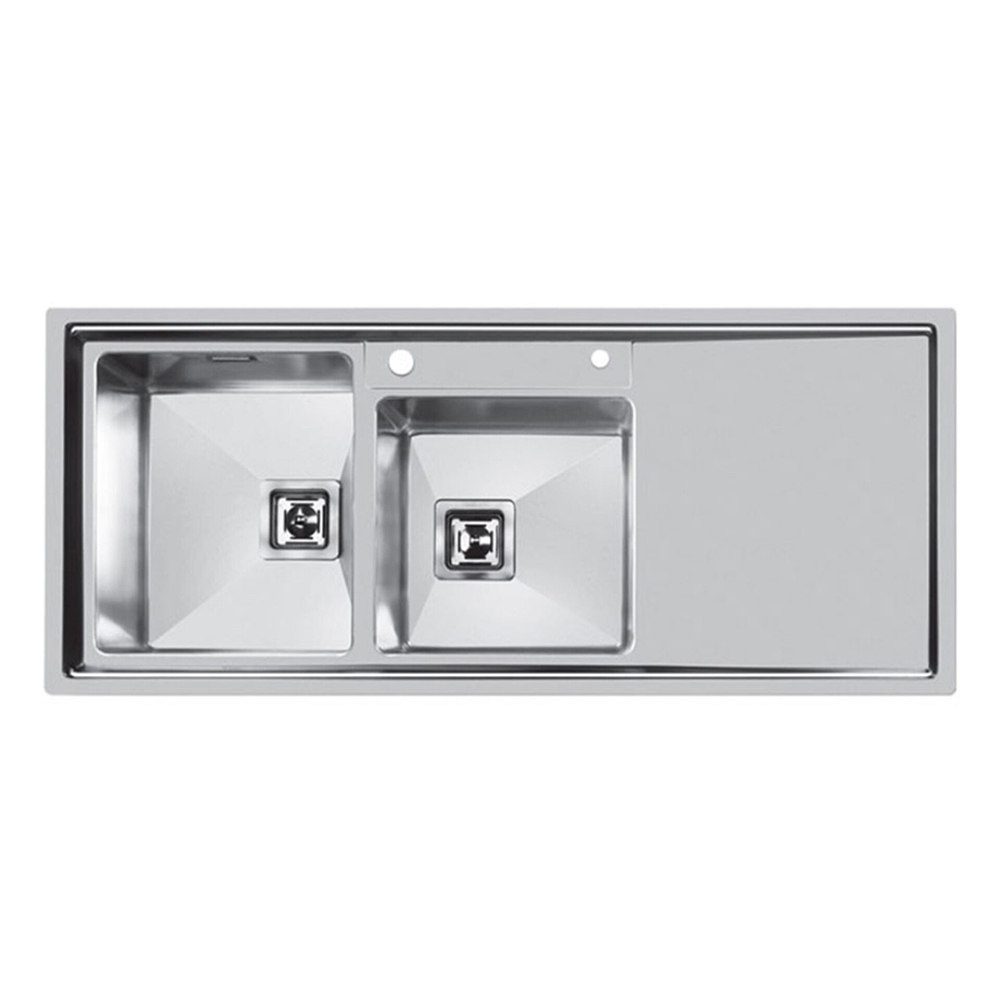 سینک اخوان توکار 600 از ویژگی های این محصول میتوان به عمق لگن 20 سانتی متری به همراه ابعاد 120 * 50 سانتی متر اشاره نمود . این سینک دارای ضخامت ورق 0/8 میلیمتر و استنلس استیل R16 میباشدتفاوت این سینک در حاشیه کمتر میباشد