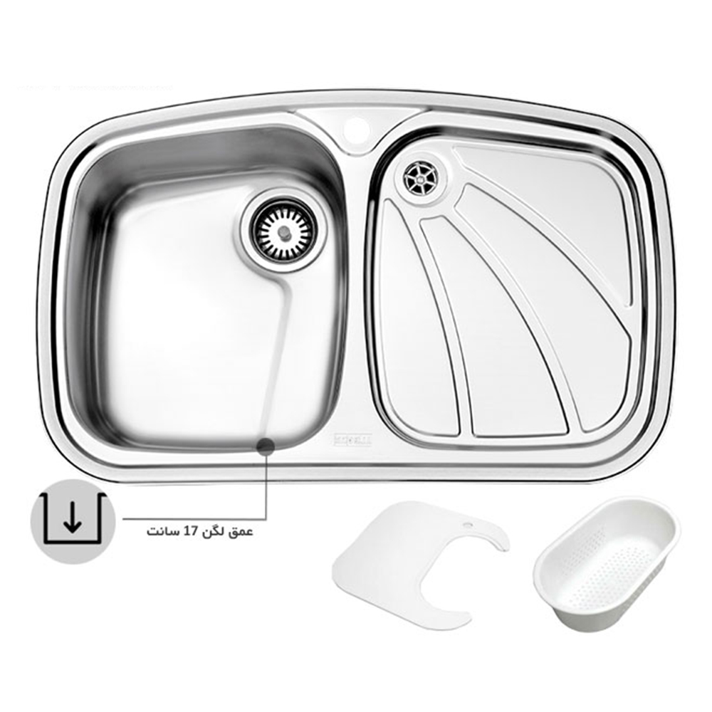 سینک استیل البرز 618 توکار دارای ابعاد 80*50 سانتی متر و زیراب سریز بزرگ در سینی به همراه سیفون فانتزی با تخلیه فوری. این سینک دارای ورق با ضخامت 0/8 میلیمتر میباشد