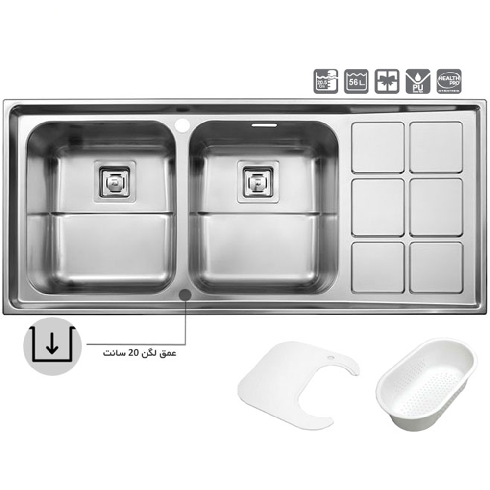سینک استیل البرز 761 توکار این محصول دارای استیل با ضخامت ورق 0/8 میلیمتری و کیفیت بالا به همراه زیراب مربع بسیار زیبا میباشد. ابعاد این سینک 116 * 52 سانتی متر و عمق لگن 20 تولید میگردد