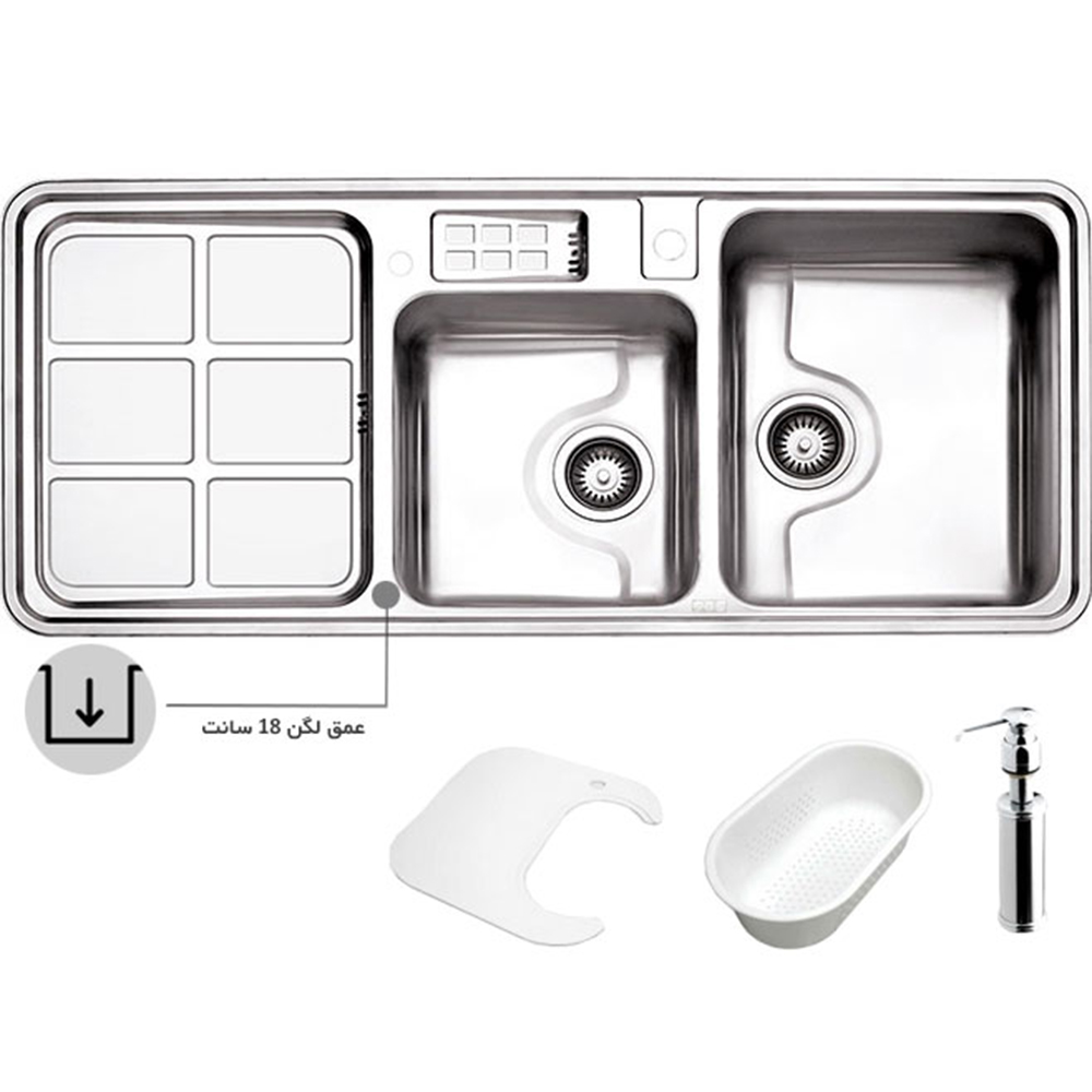 سینک استیل البرز 855 توکار دارای جا مایع و ابعاد 120 * 52 سانتی متر به جرات میتوان گفت پر فروش ترین سینک کارخانه استیل البرز همین محصول است از ویژگی های این محصول میتوان به طراحی فوق العاده لگن ها با حجم زیاد اشاره نمود