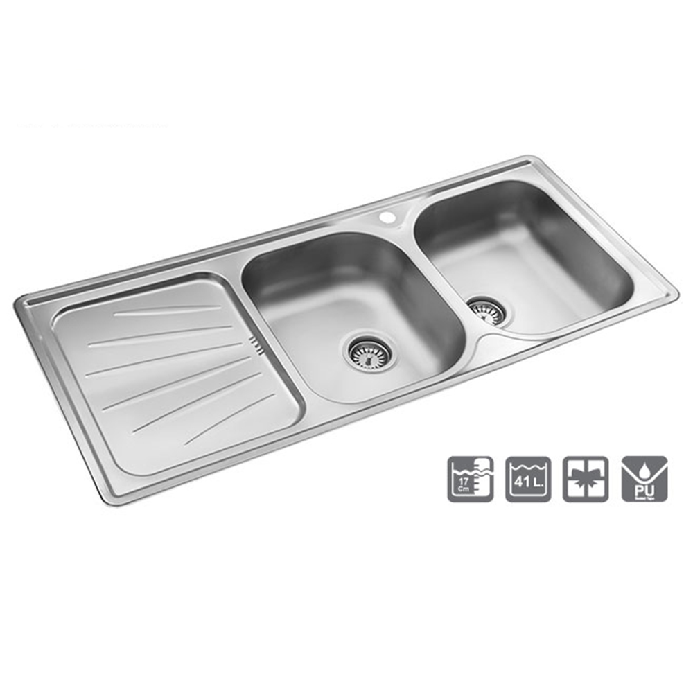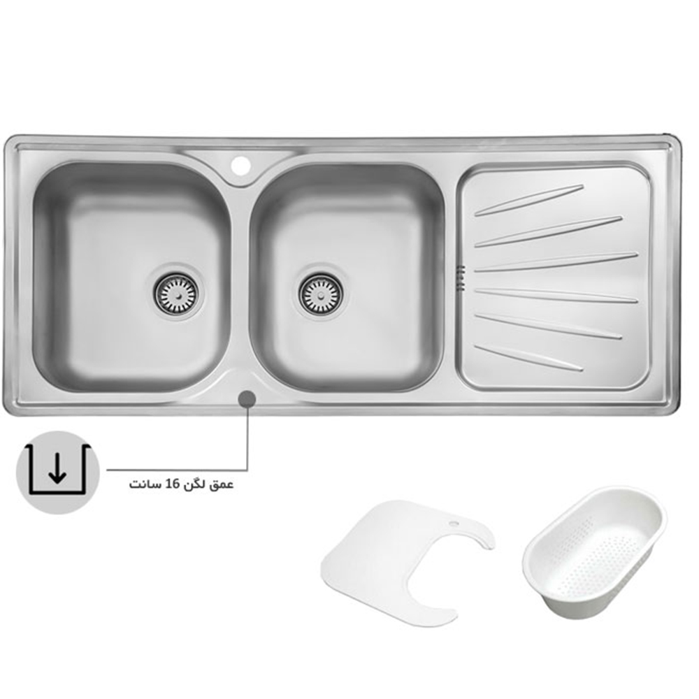 سینک استیل البرز 214 توکار دارای ابعاد 120 * 52 سانتی متر عمق لگن 16 سانت توجه فرمایید این عمق لگن خیلی مناسب برای استفاده خانگی نمیباشد. این محصول دارای سرریز بر روی سینی میباشد
