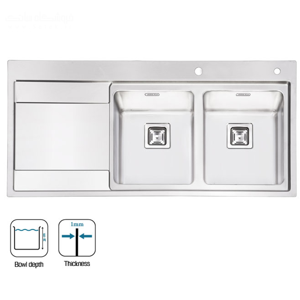 سینک ایلیا استیل 2070 توکار این سینک دارای ابعاد 53*120 سانتی متر و ضخامت 1 میلیمتر و عمق لگن 20 سانتی متر و نوع لگن باکس و ظرفیت لگن 54 لیتر و استیل ضد زنگ 18/10 و دارای عایق صدا و بسته بندی مقاوم می باشد.