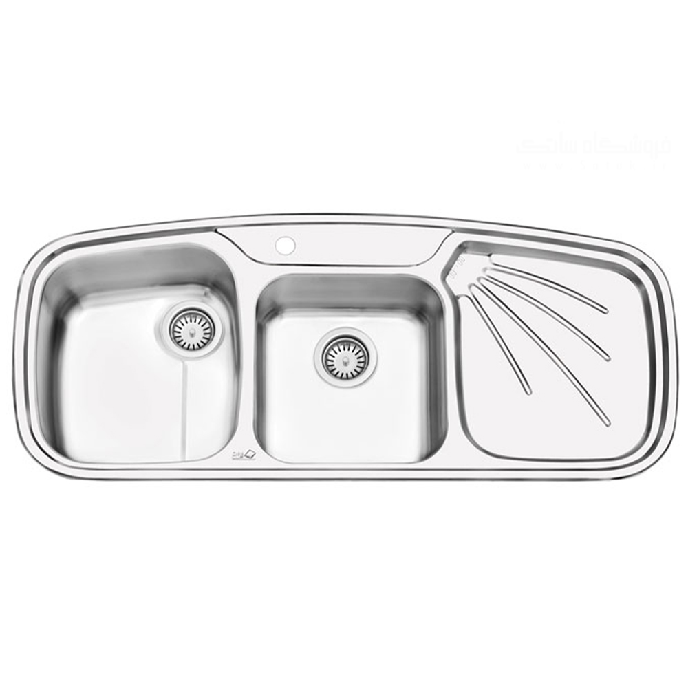 سینک ایلیا استیل 2013 توکار دارای 2 لگن با ویژگی بارز عمق 22 سانت و سینی با طرح پروانه به همراه ابعاد 116 در 51 سانتی متر عرضه میگردد