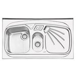 سینک ایلیا استیل 1012 روکار این سینک دارای ابعاد 60*100 سانتیمتر و ضخامت 0,8 و عمق لگن بزرگ 22 سانتیمتر و عمق لگن کوچک 15 سانتی متر و ظرفیت 35 لیتر و دارای جا اسکاچی و عایق صدا و 10 سال گارانتی شرکت ایلیا استیل می باشد.