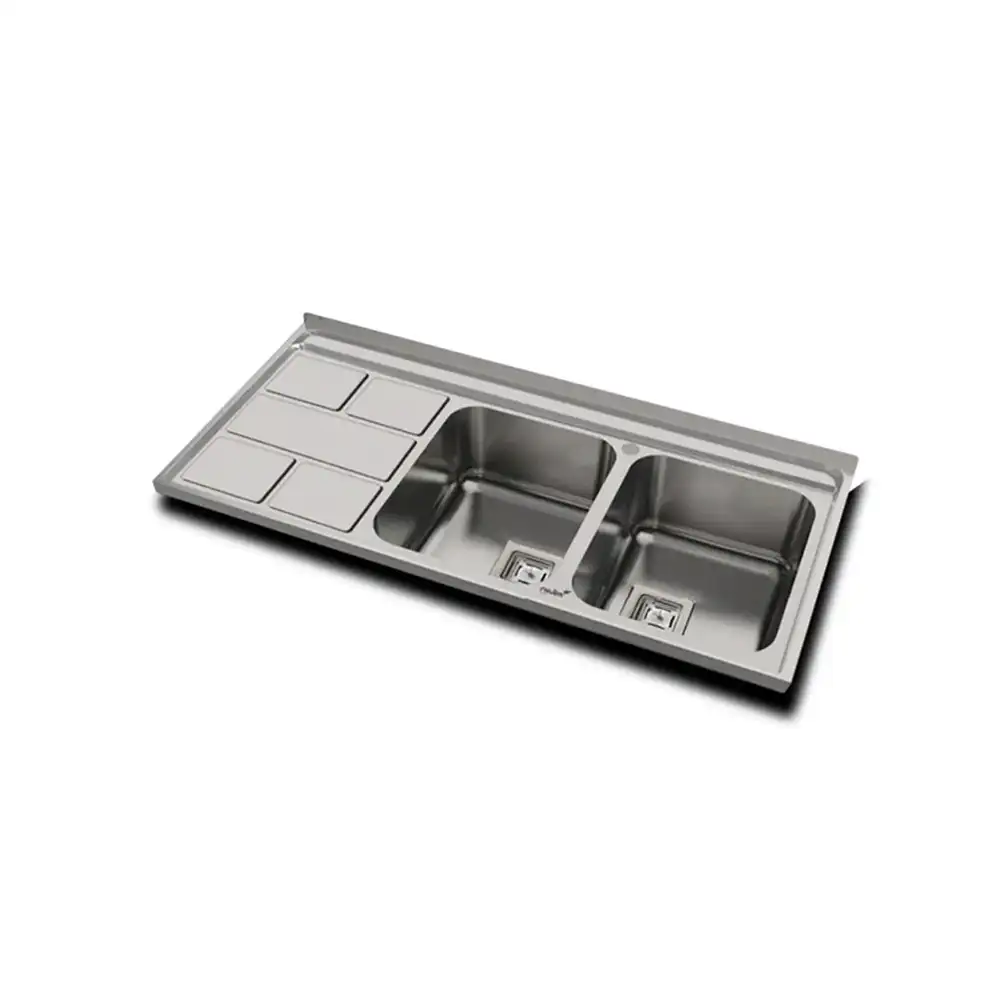 جنس : استنلس استیل 304 ضخامت ورق: 1میلیمتر کارکرد: روکار تعداد لگن:دو لگن عمق لگن:22 سانتیمتر سینی:دارد سرریز سینی:ندارد سرریز لگن:ندارد فرم زیرآب: گرد طول سینک: 120 سانتیمتر عرض سینک: 60سانتیمتر گارانتی: 10...بیشتر