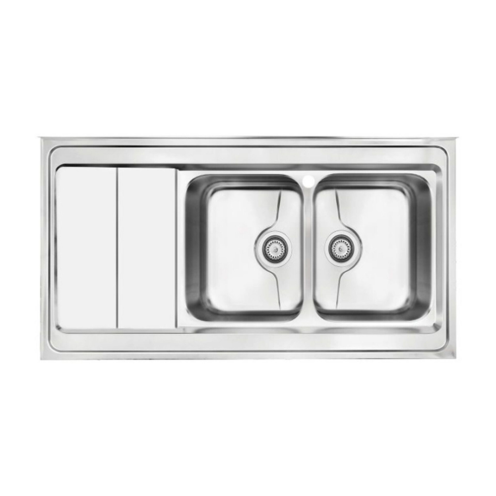سینک میکس پلاس مدل 9062 P روکار دارای ابعاد 120 * 60 سانت به همراه عمق لگن های این سینک حدود 20 سانتی متر و ضخامت ورق 0/8 میلیمتر میباشد