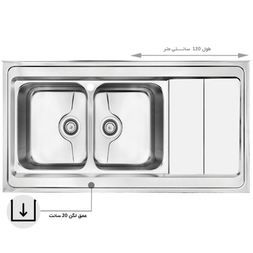 سینک کن مدل 9062 P روکار دارای ابعاد 120 * 60 سانت به همراه عمق لگن های این سینک حدود 20 سانتی متر و ضخامت ورق 0/8 میلیمتر میباشد