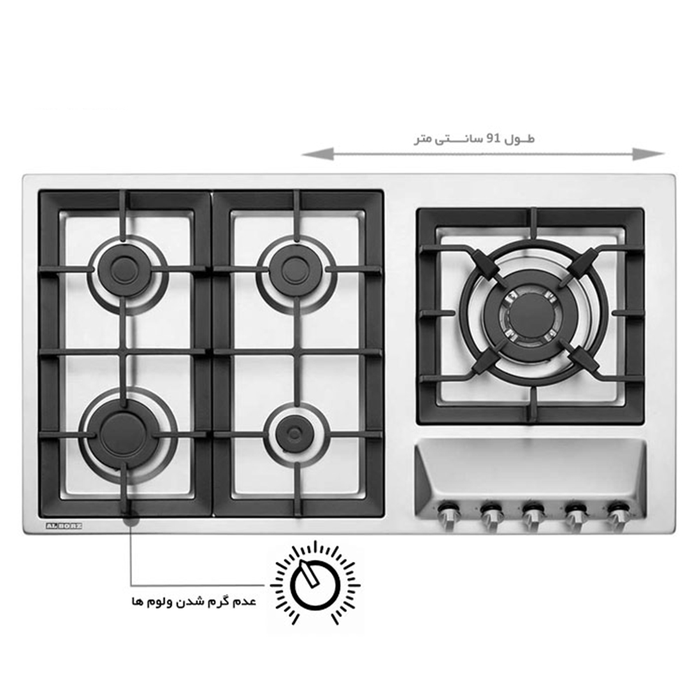 گاز استیل البرز مدل S 5959 این محصول با نمای استیل و قطعات اصلی ساخت کشور ایران. ابعاد این اجاق گاز صفحه ای 91 * 51 سانتی متر میباشد. پلوپز این اجاق گاز در سمت راست قرار گرفته که دارای پنل جلوگیری از رسدن حرارت به ولوم ها میباشد